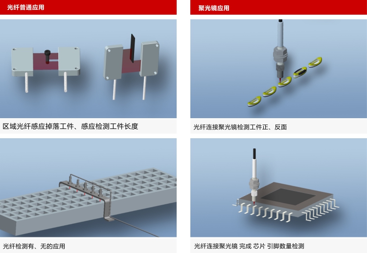 光纤放大器可以作为一种类型为对射或漫反射的传感器。而光纤可以很容易的集成在空间受限的地方。光纤放大器和光纤的传感组合,可以应对复杂、多变的工业自动化系统中的感应需求。